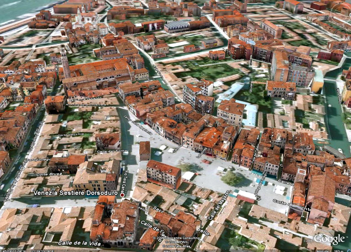 san margarita localisation de l'église de San Carmini et de la place de Santa Margarita (copyright Google Earth)