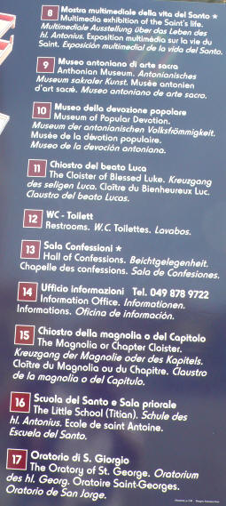 le plan du Sanctuaire de Saint Antoine avec le parcours de Pèlerinage