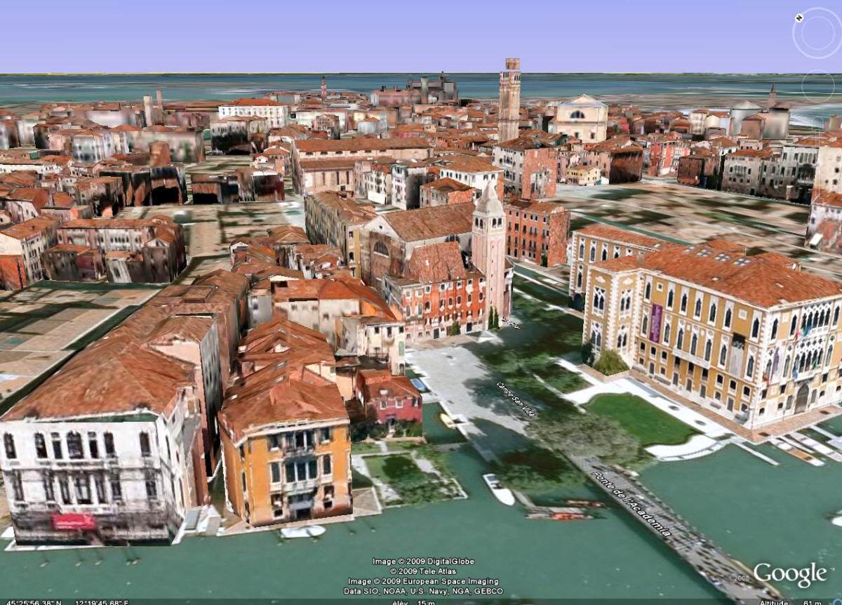 san vidal                          localisation du Pont de l'Académie, de la place de San Vidal, son église et le Palais de Cavalli Franchetti   (copyright Google Earth)