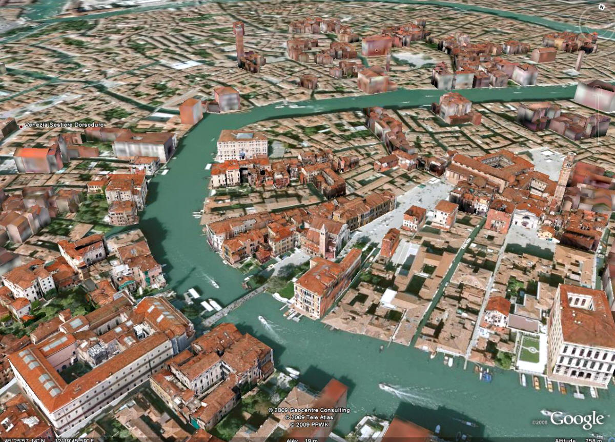 pont de l'academie l'Académie, le pont de l'Académie, la place San Vidal et son église, la place Morosini et la Basilique San Stefano (copyright Google Earth)