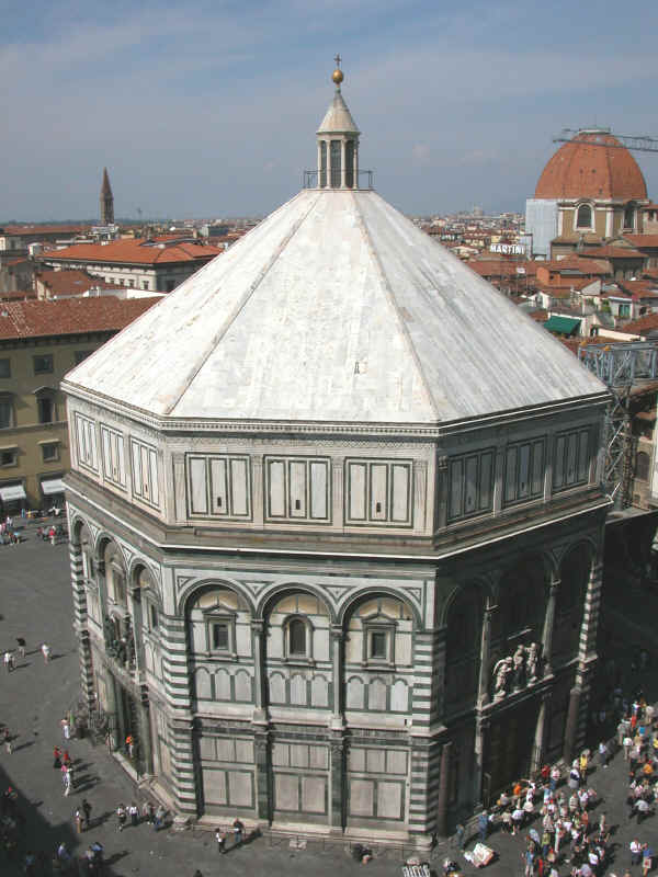 florence01 le Baptistère Saint Jean (IV et Vème siècle) revêtu d'un parement extérieur en marbre blanc et vert (cliquez sur les photos pour zoomer)