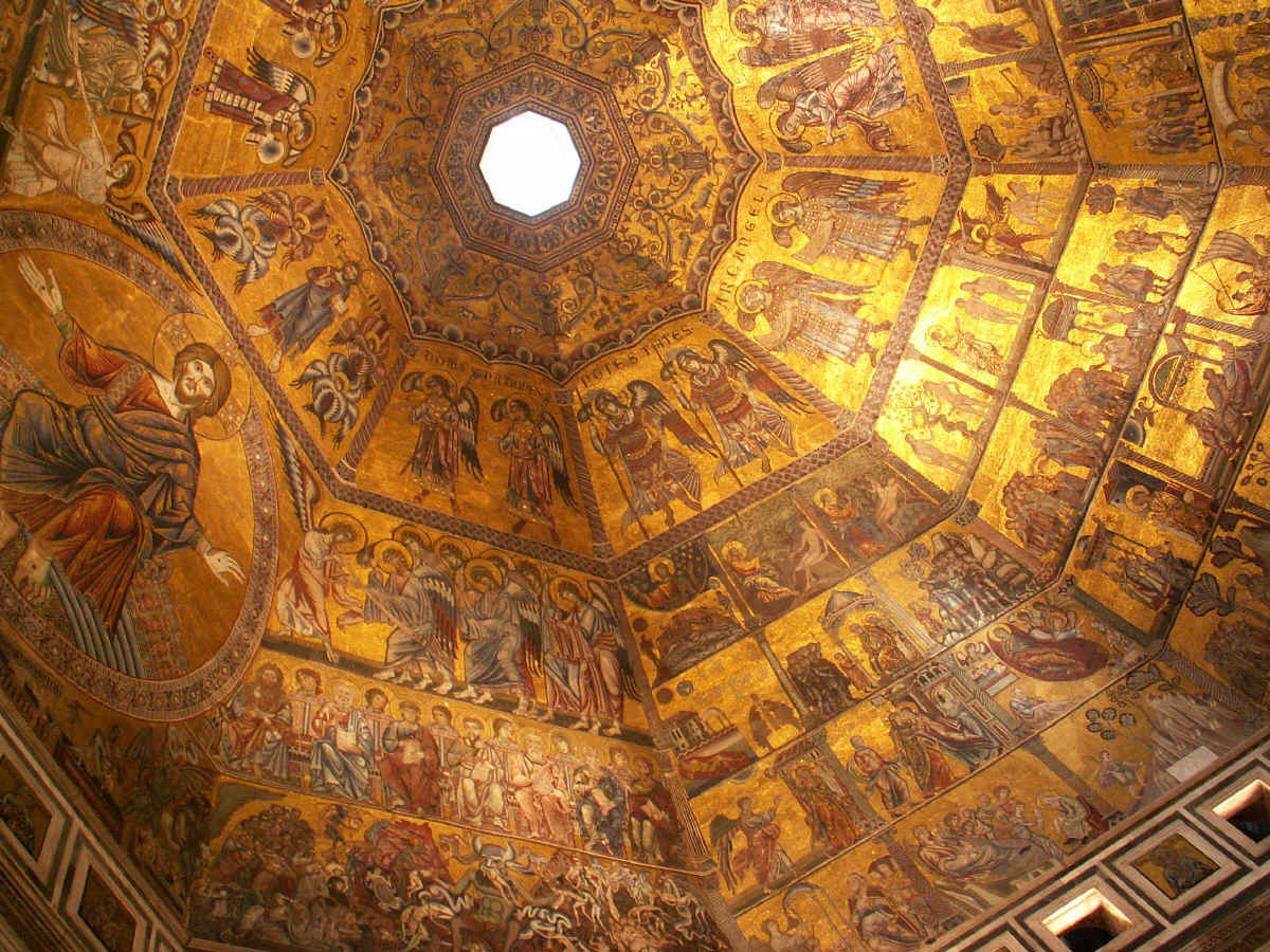 le baptistère                                                                l'intérieur de la coupole du Baptistère : une mosaïque de toute beauté...(XII - XIVème siècle)
