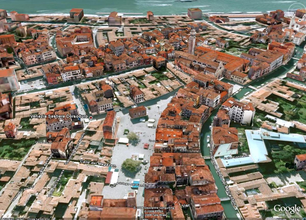 san carmini localisation de l'église de San Carmini et de la place de Santa Margarita (copyright Google Earth)