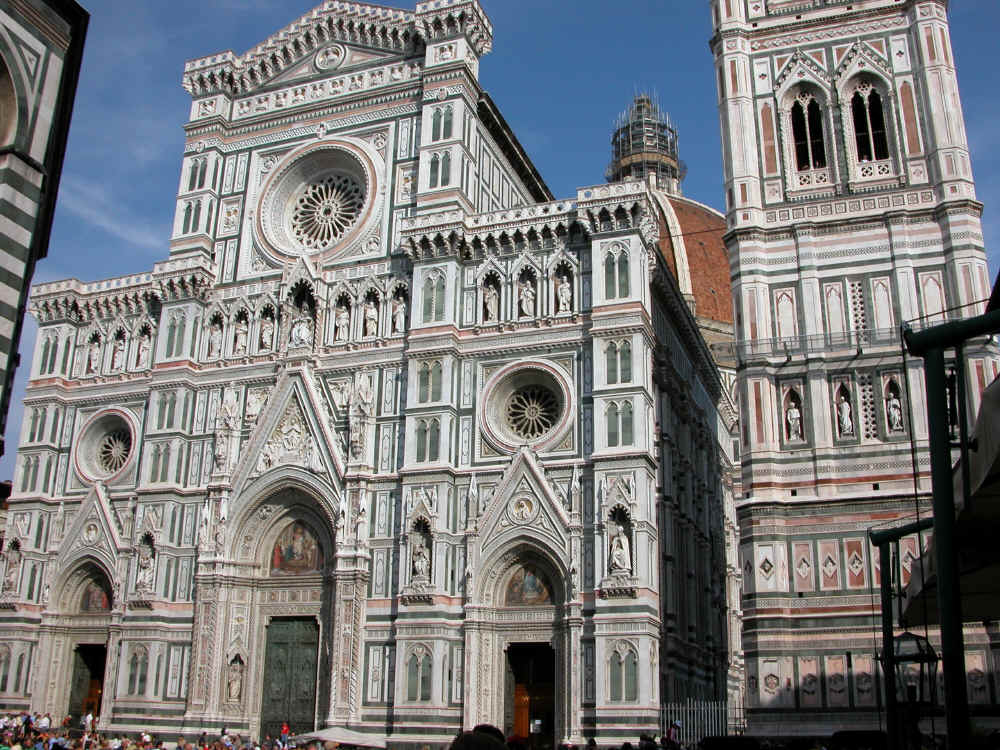dome01 la magnifique façade de la cathédrale avec ses trois portails et ses trois rosaces et le bas du Campanile