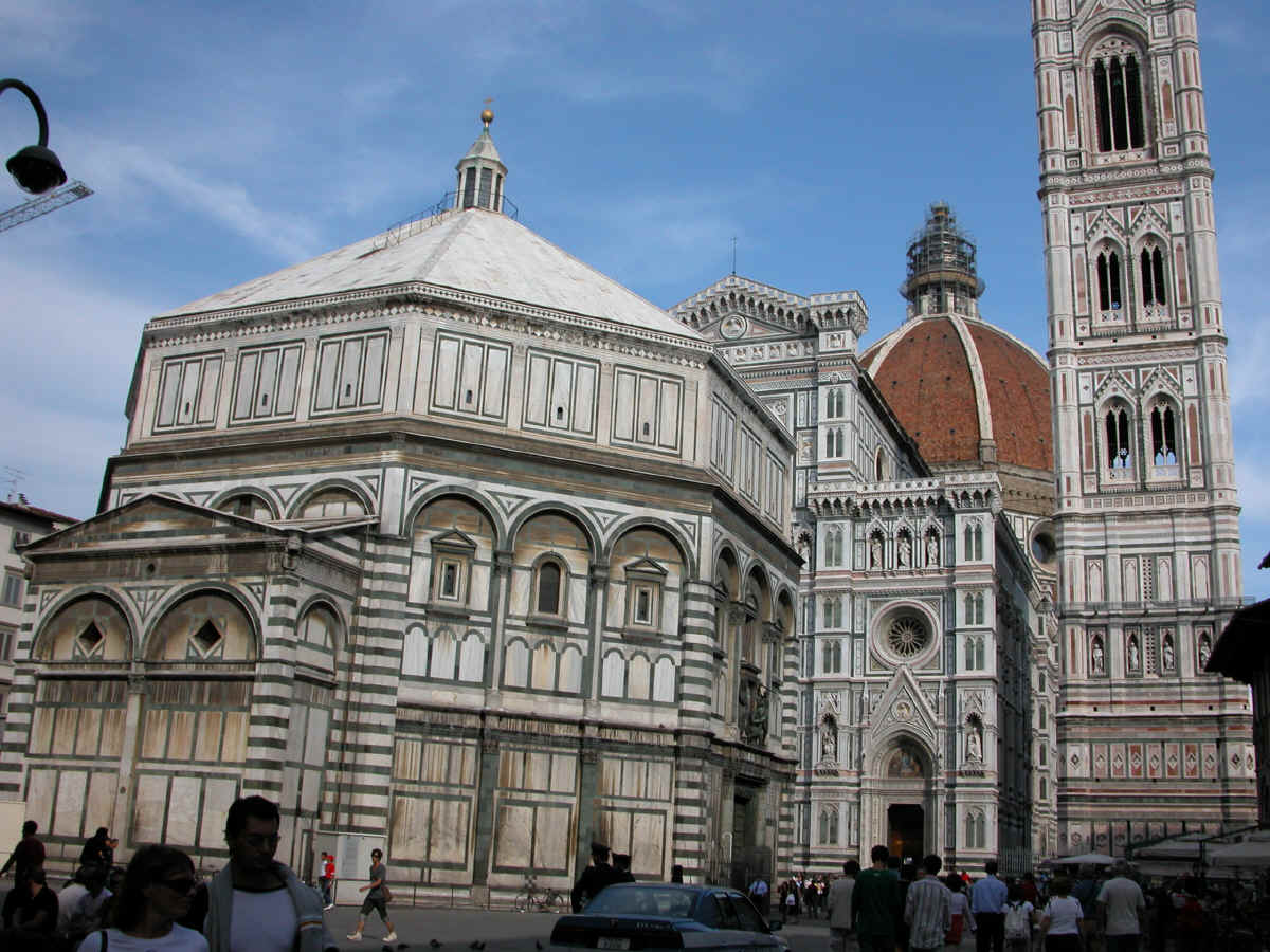 l'ensemble : le Baptistère, la Cathédrale et le Campanile de Giotto