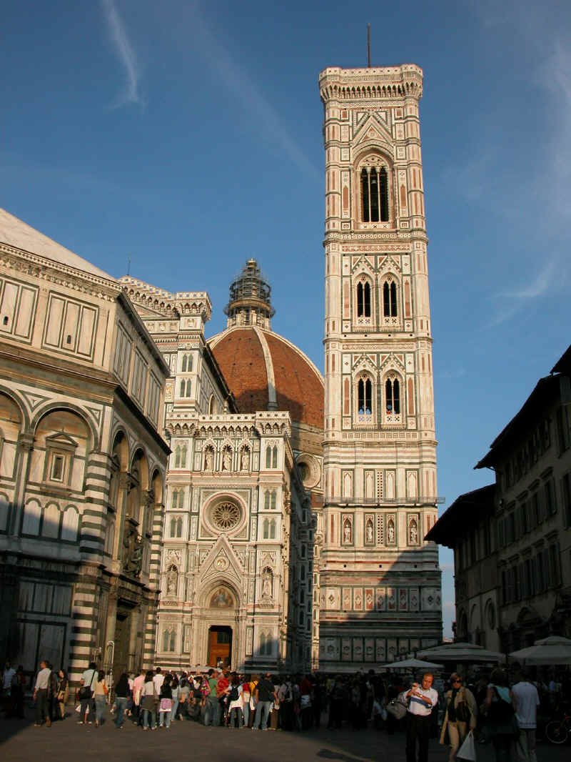 le magnifique Campanile de Giotto (XIVème, 80m) au soleil couchant