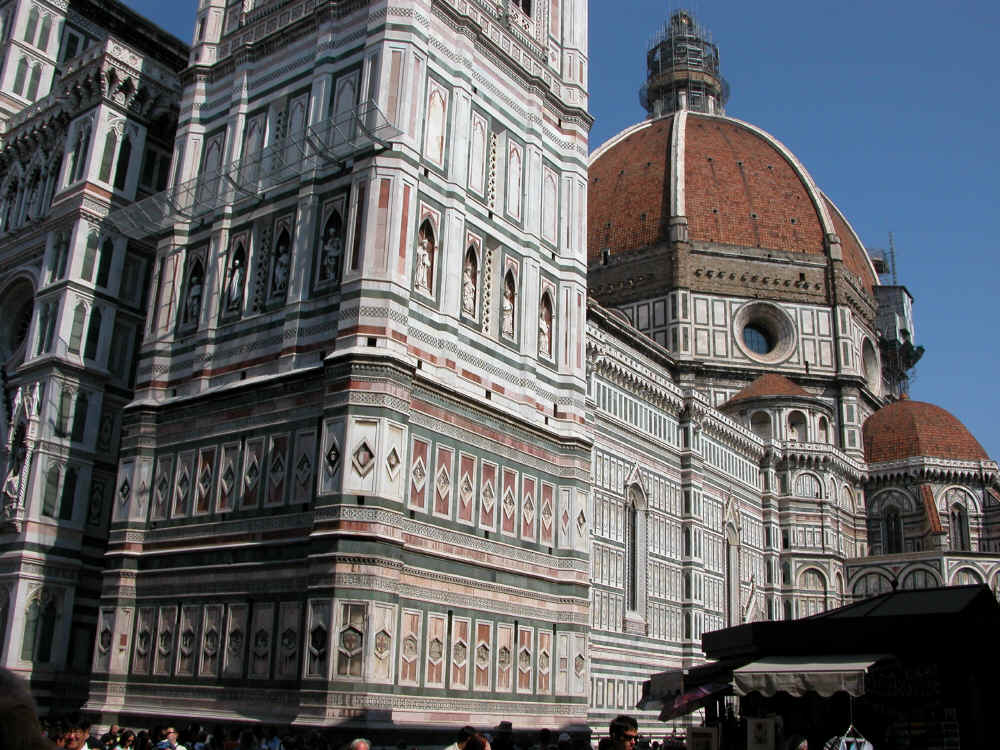 le bas du Campanile et la partie latérale de la cathédrale avec la coupole de Brunelleschi