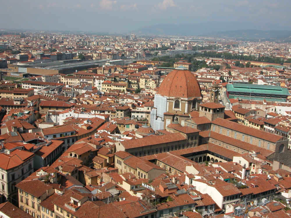 général01 vue ' nord, nord-ouest de Florence" à partir du Campanile : la gare centrale, l'église Lorenzo et les Halles