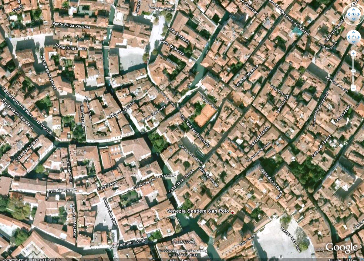 san giacomo localisation de l'église et de la place de San Giacomo dell Orio (copyright Google Earth)