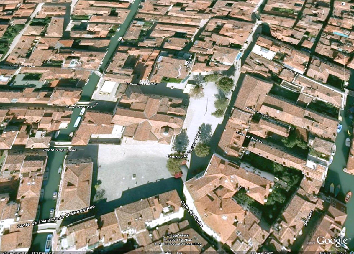 san giacomo                                                localisation de l'église et de la place de San Giacomo dell Orio  (copyright Google Earth)