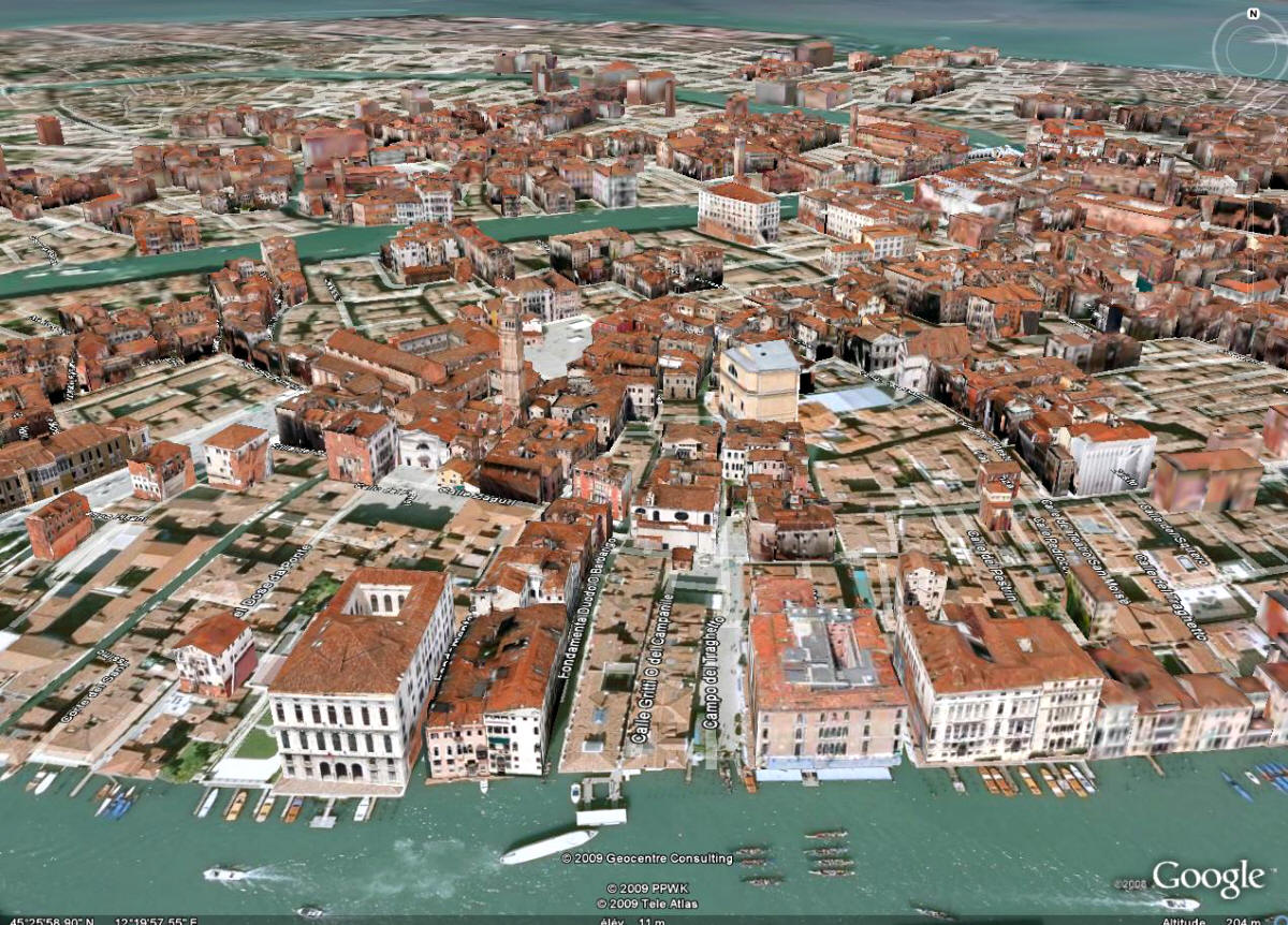 santa maria giglio localisation de l'église de Santa Maria Giglio, à gauche l'église San Maurizio et la Basilique San Stefano (copyright Google Earth)