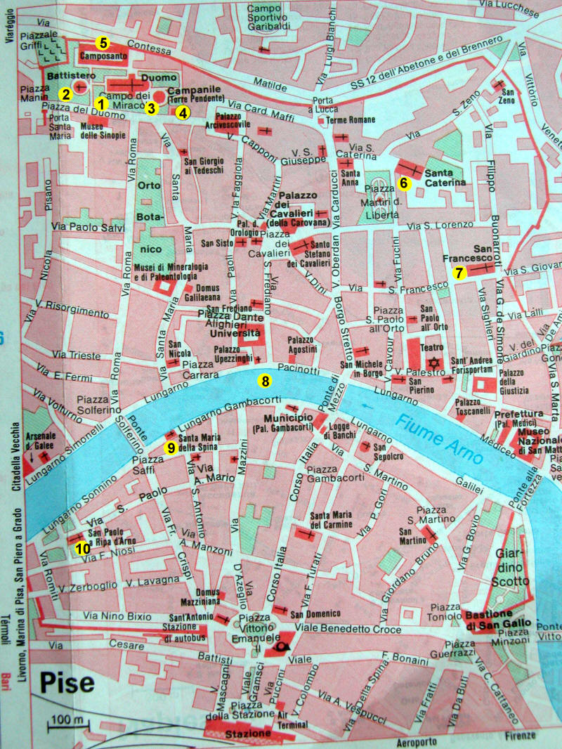 0 - général (maj:26/07/2009) 1 - Duomo (maj:26/07/2009) 2 - Baptistère (maj:26/07/2009) 3 - Campanile (maj:25/07/2009) 4 - Musée de l'Opera 5 - Composanta 6 - Santa Caterina 7 - San Francesco 8 - Arno 9 - Santa Maria Spina 10 - San Paolo |
