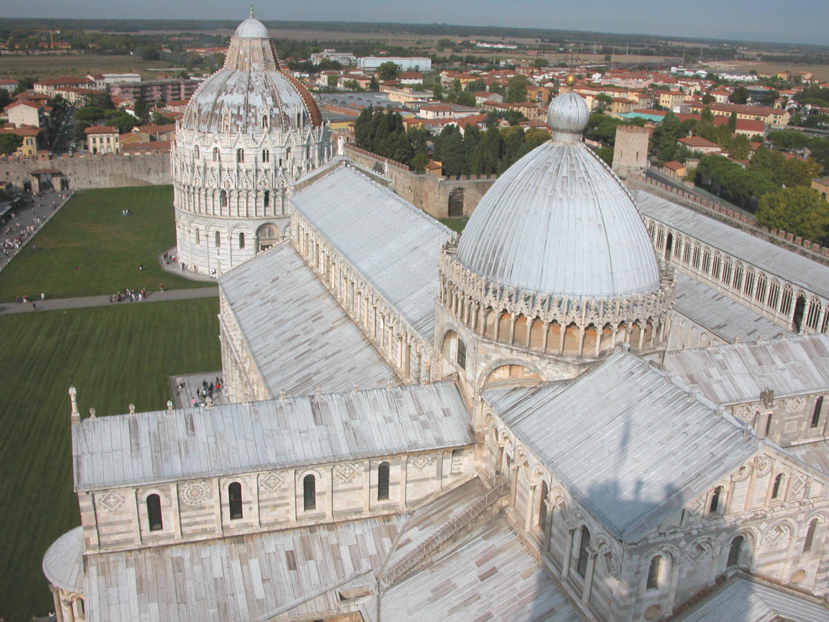 (la coupole de la cathédrale, le baptistère, la muraille médiévale et, sur la