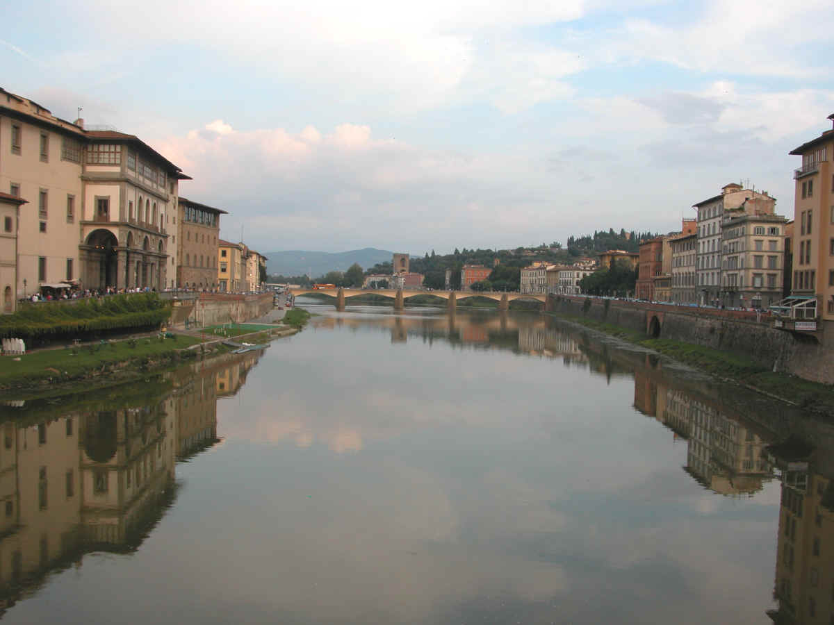 pontevecchio01 de gauche à droite en amont du Ponte Vecchio : la façade des Offices, le Ponte Alle Grazie et au loin la Tour Poggi offices01