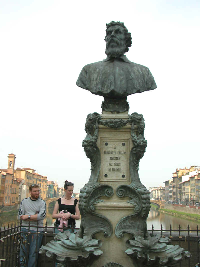 le buste de Benvenuto Cellini dressé au milieu du Ponte Vecchio