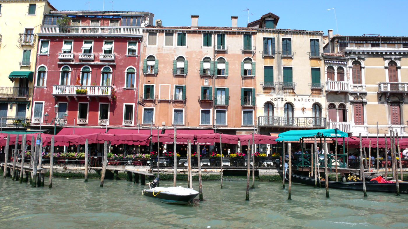 hôtel et maisons sur la rive droite en aval du pont Rialto