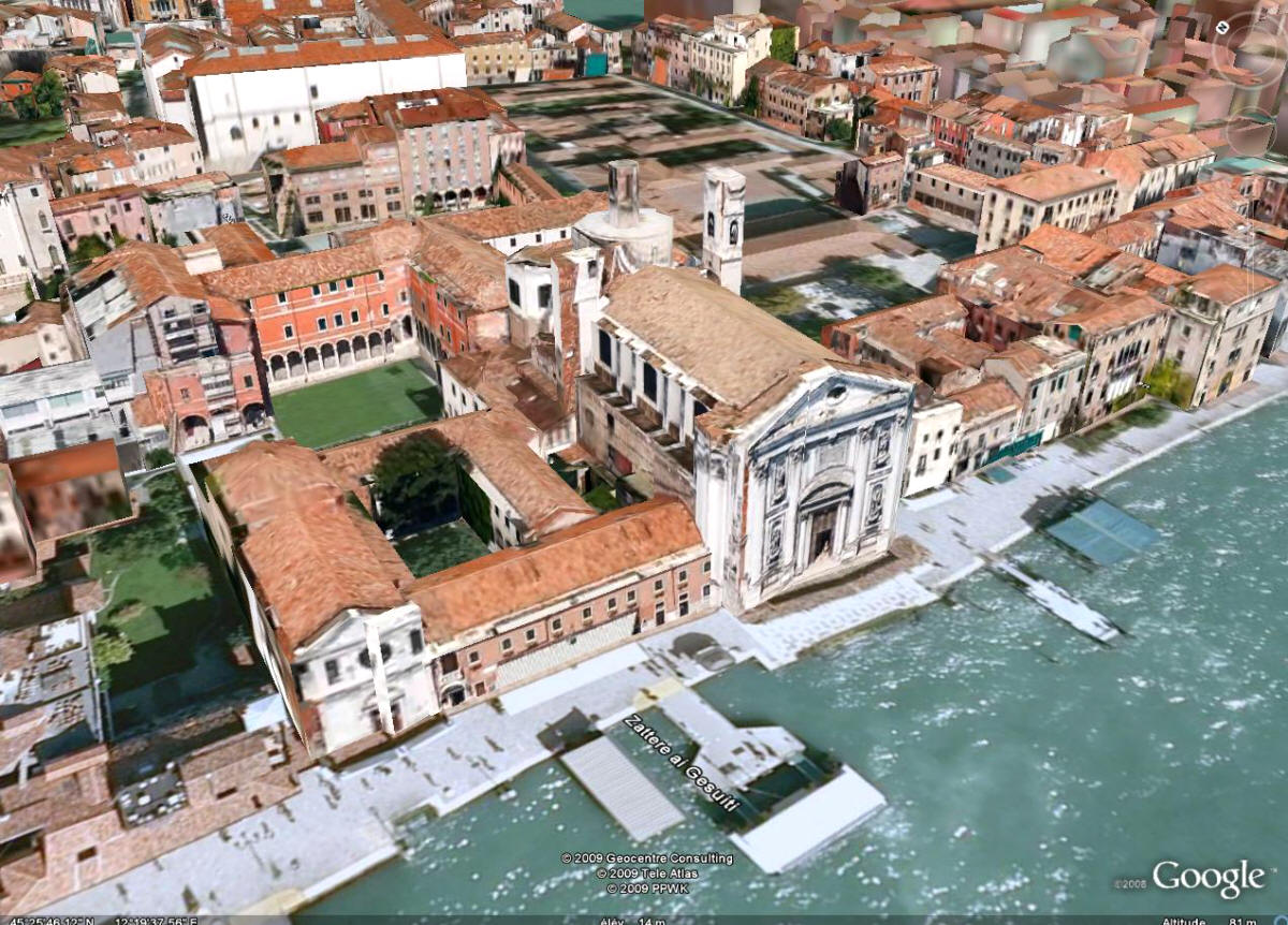 santa maria del rosario                       localisation des églises de Gesuati, de Santa Maria della Visitazione et de Sainte Agnes             (copyright Google Earth)