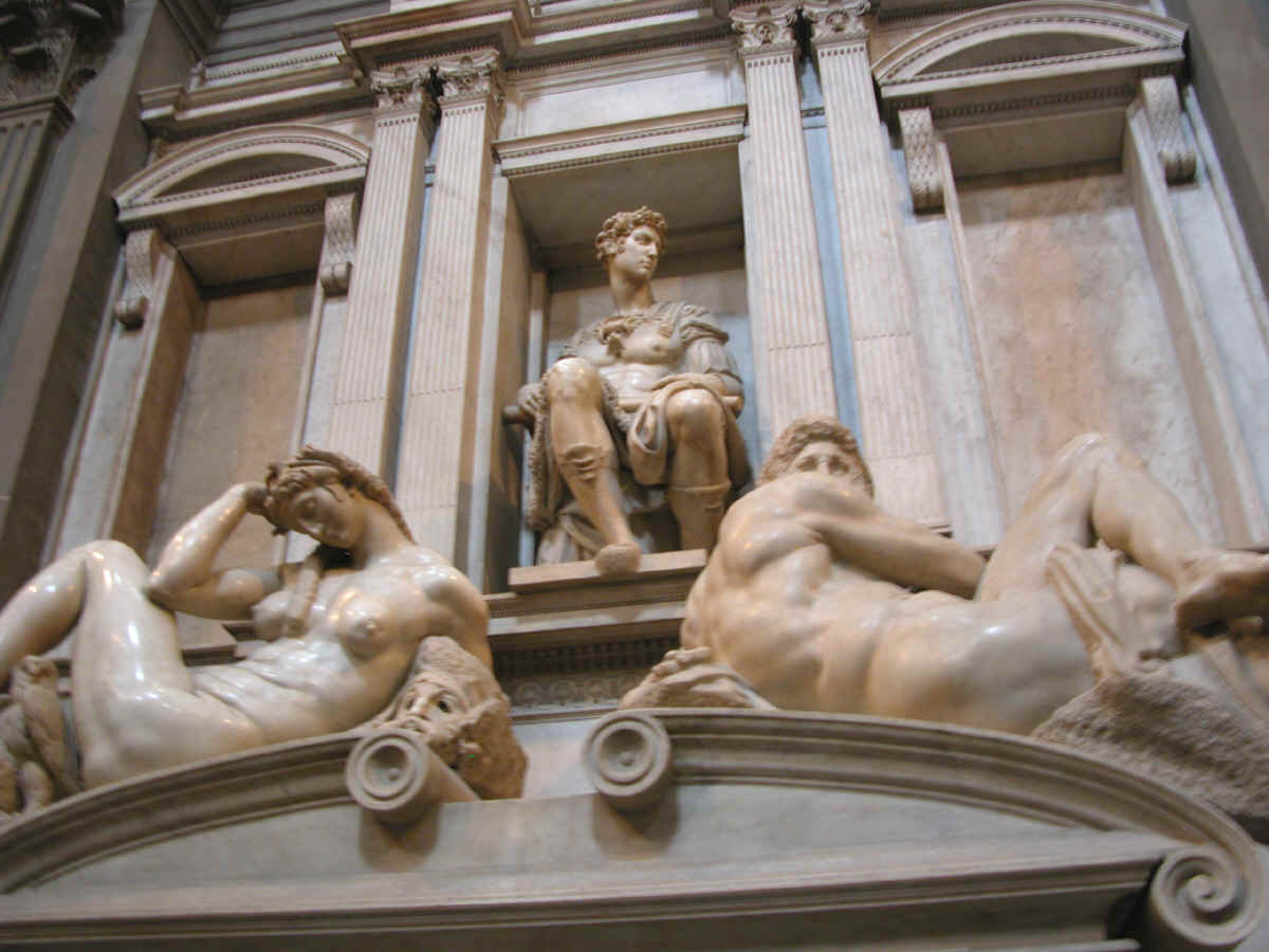florence01 le tombeau de Julien duc de Nemours avec les allégories du Jour et de la Nuit de Michel-Ange (vers 1520)