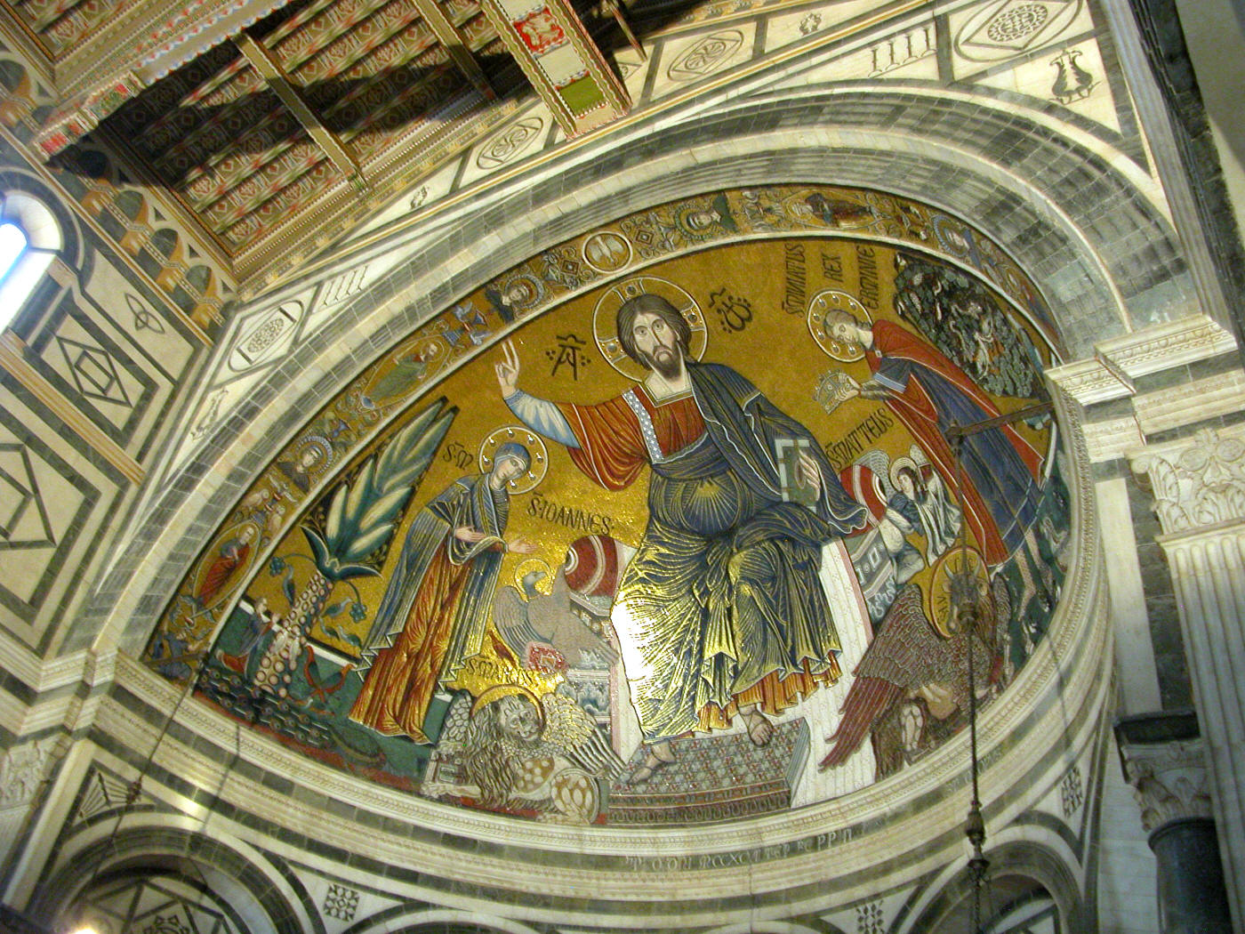 l'intérieur de la Basilique de San Miniato (XI-XIIIème siècle) (mosaïque de 1297 représentant le Christ entre la Vierge et Saint Miniato)