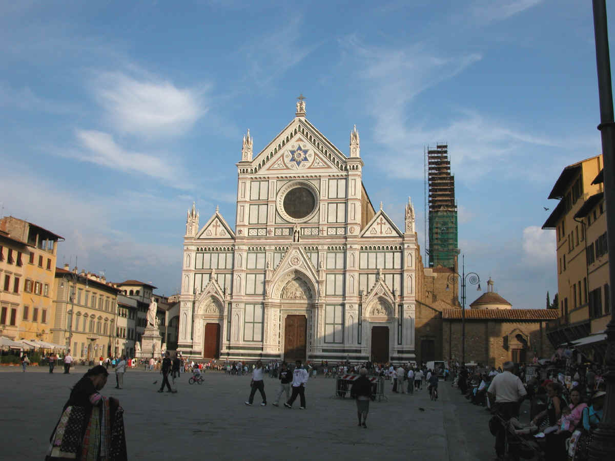 santacroce01 la place et l'église Santa Croce (Arnolfo di Cambio XIII ème siècle) au coucher du soleil