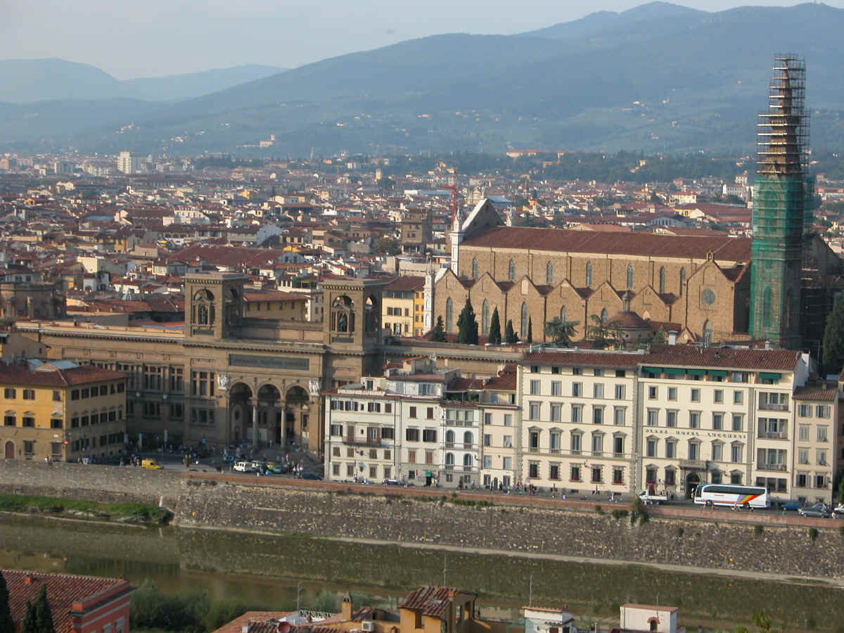 santacroce01 l'église Santa Croce (Arnolfo di Cambio XIII ème siècle) et la Bibliothèque Nationale vue de l'esplanade de Michel-Ange