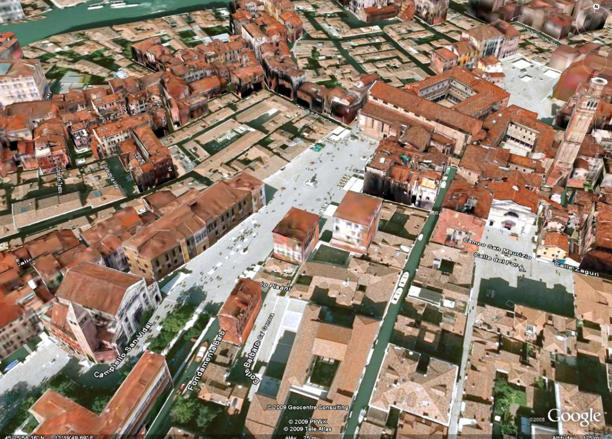 san stefano localisation de la Basilique de San Stefano, la place de Morosini et l'église de San Vidal (copyright Google Earth)