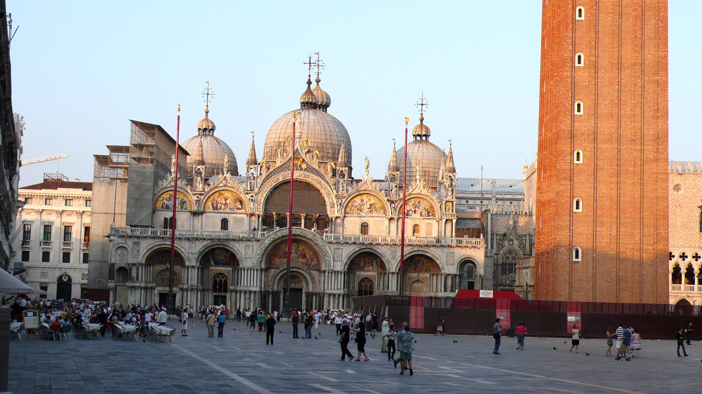 l'entrée de la cathédrale Saint Marc et le Campanile au coucher du soleil....
