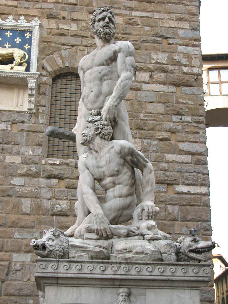 la statue d'Hercule tuant Cacus (Baccio-Bandinelli 1534) à l'entrée du Palais Vecchio