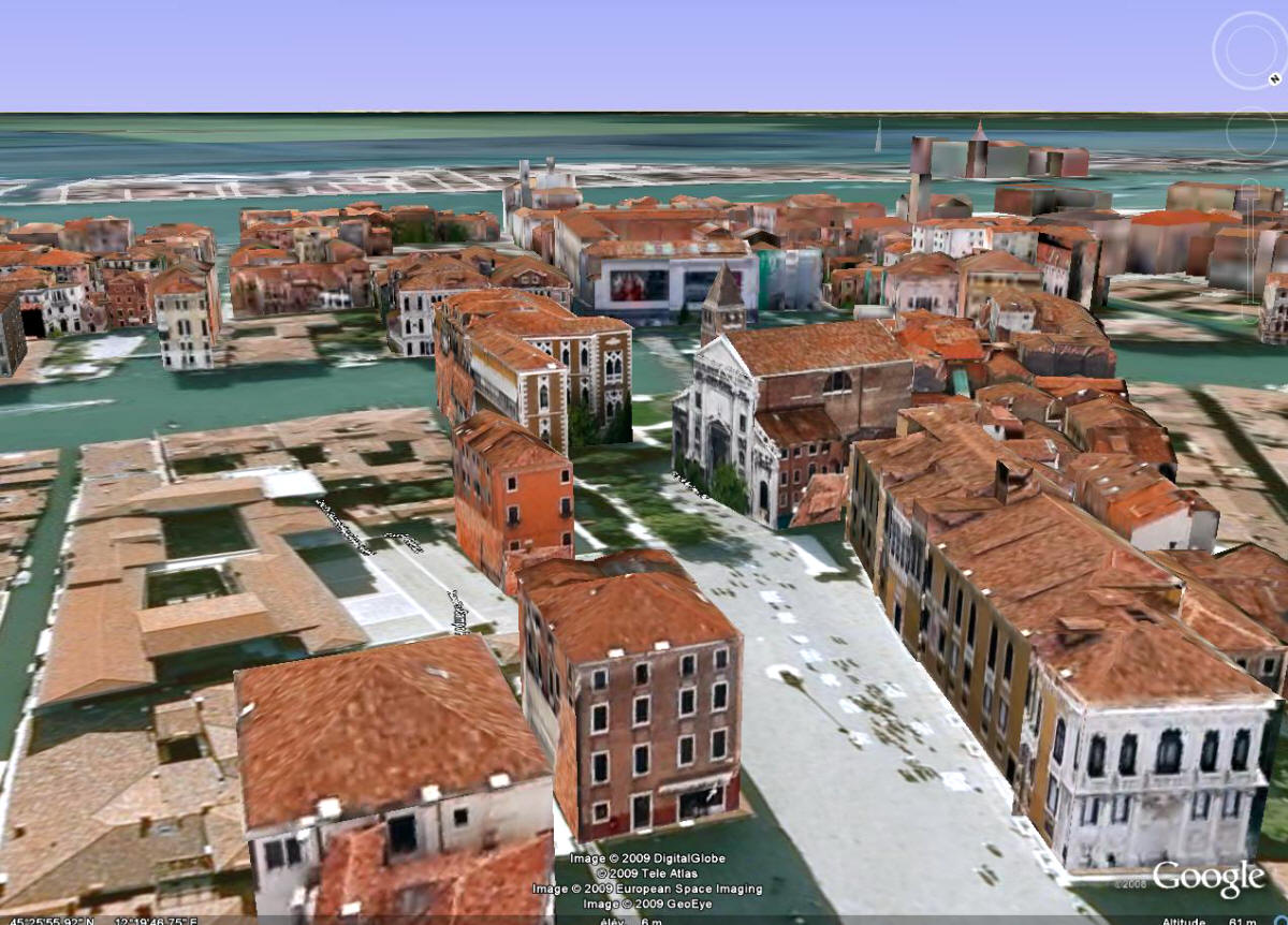 san vidal localisation de la place de Morosini, l'église de San Vidal et le pont de l'Académie (copyright Google Earth)