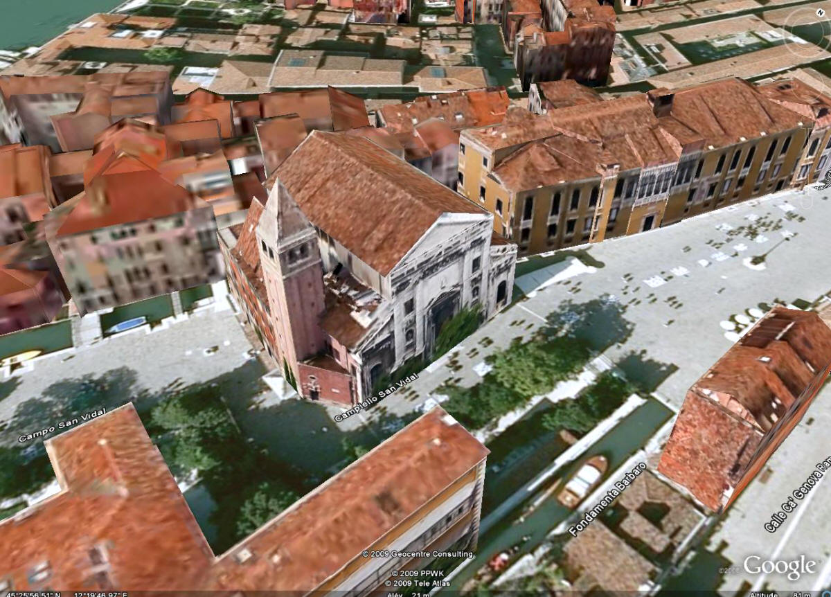 san vidal localisation de la place de Morosini, l'église de San Vidal et sa place (copyright Google Earth)