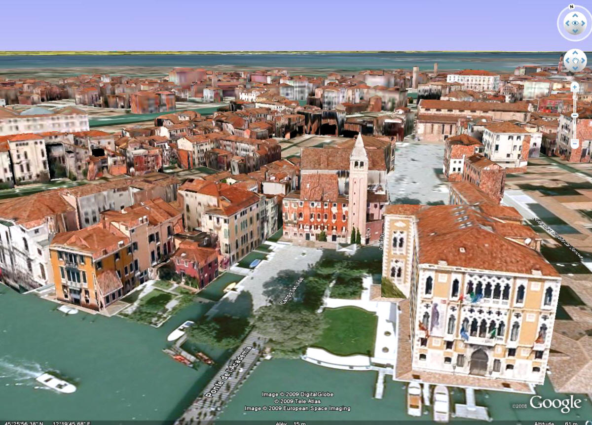 san vidal                         localisation du Pont de l'Académie, de la place de San Vidal, son église et le Palais de Cavalli Franchetti   (copyright Google Earth)